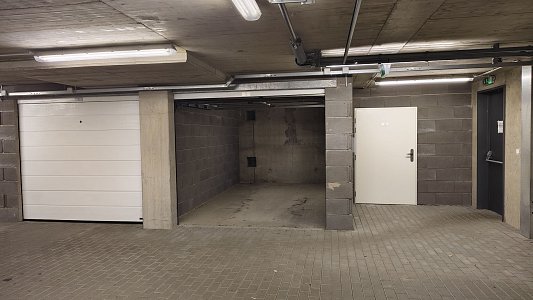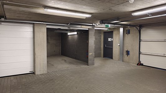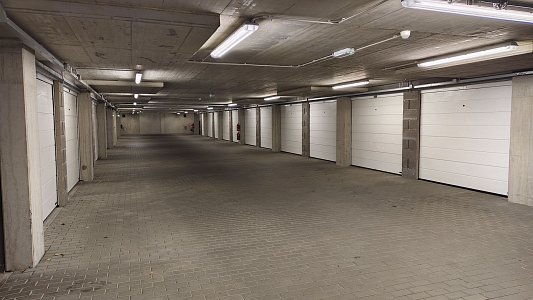 Druhá garáž se nachází v přízemí budovy, jako první u vjezdu do budovy. Rozměry garáže jsou cca 300 cm na šířku, 530 cm na délku a 250 cm na výšku.